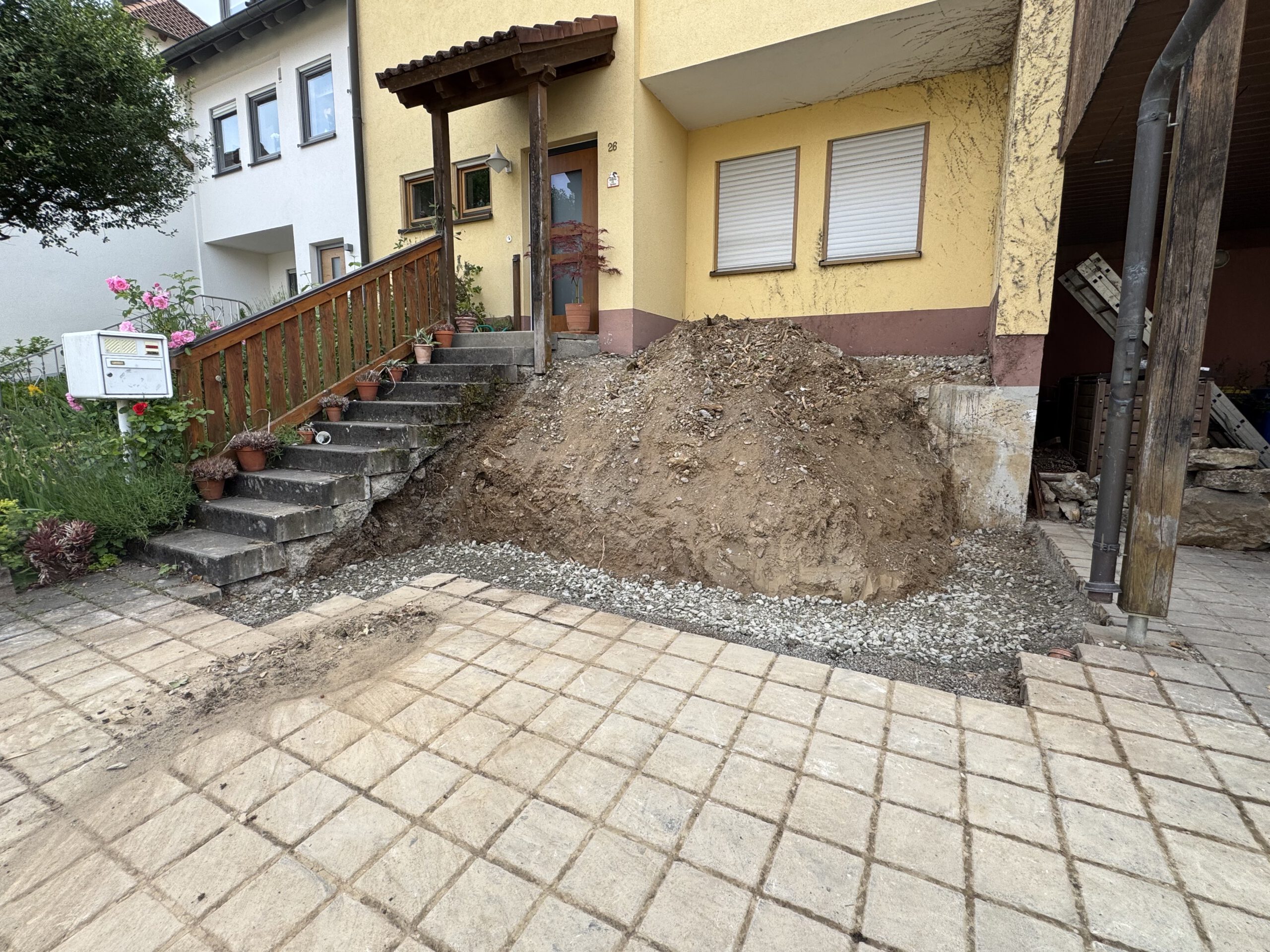 Der freigelegte Untergrund wurde sorgfältig verdichtet, um Setzungen zu vermeiden und eine dauerhaft tragfähige Grundlage zu gewährleisten.