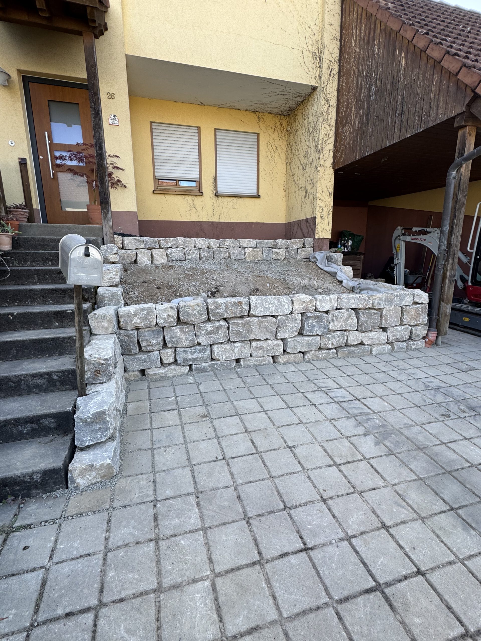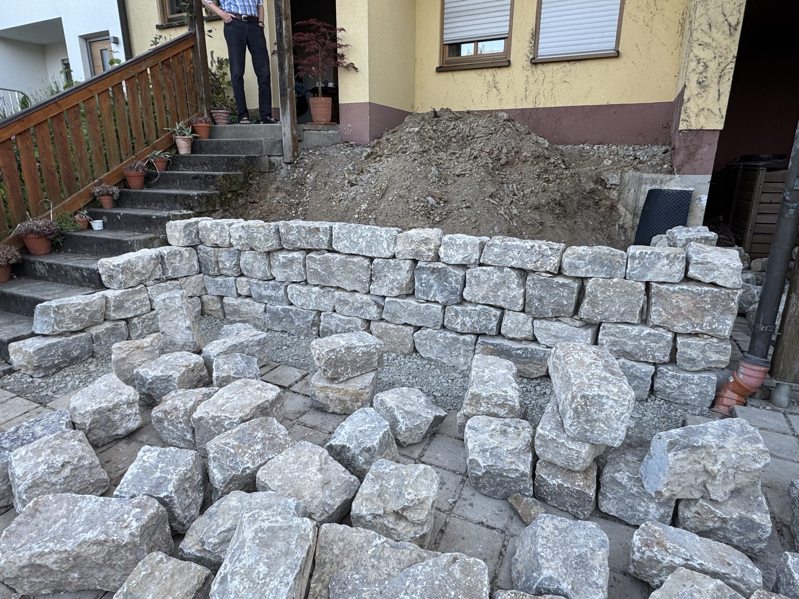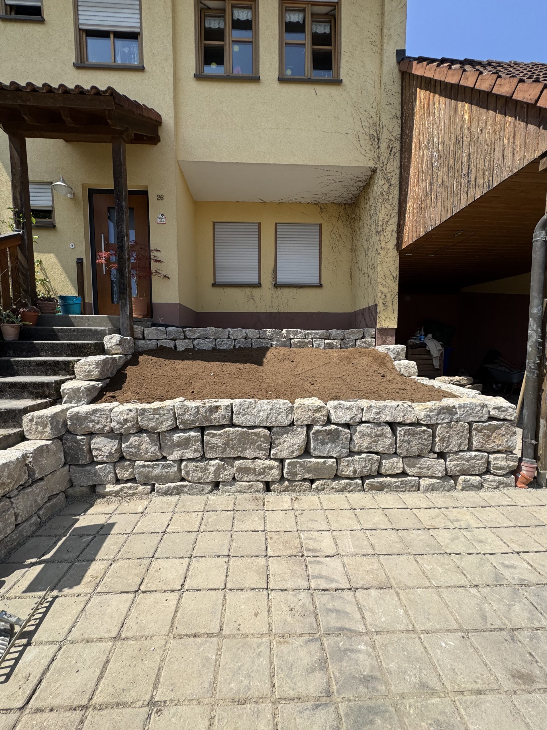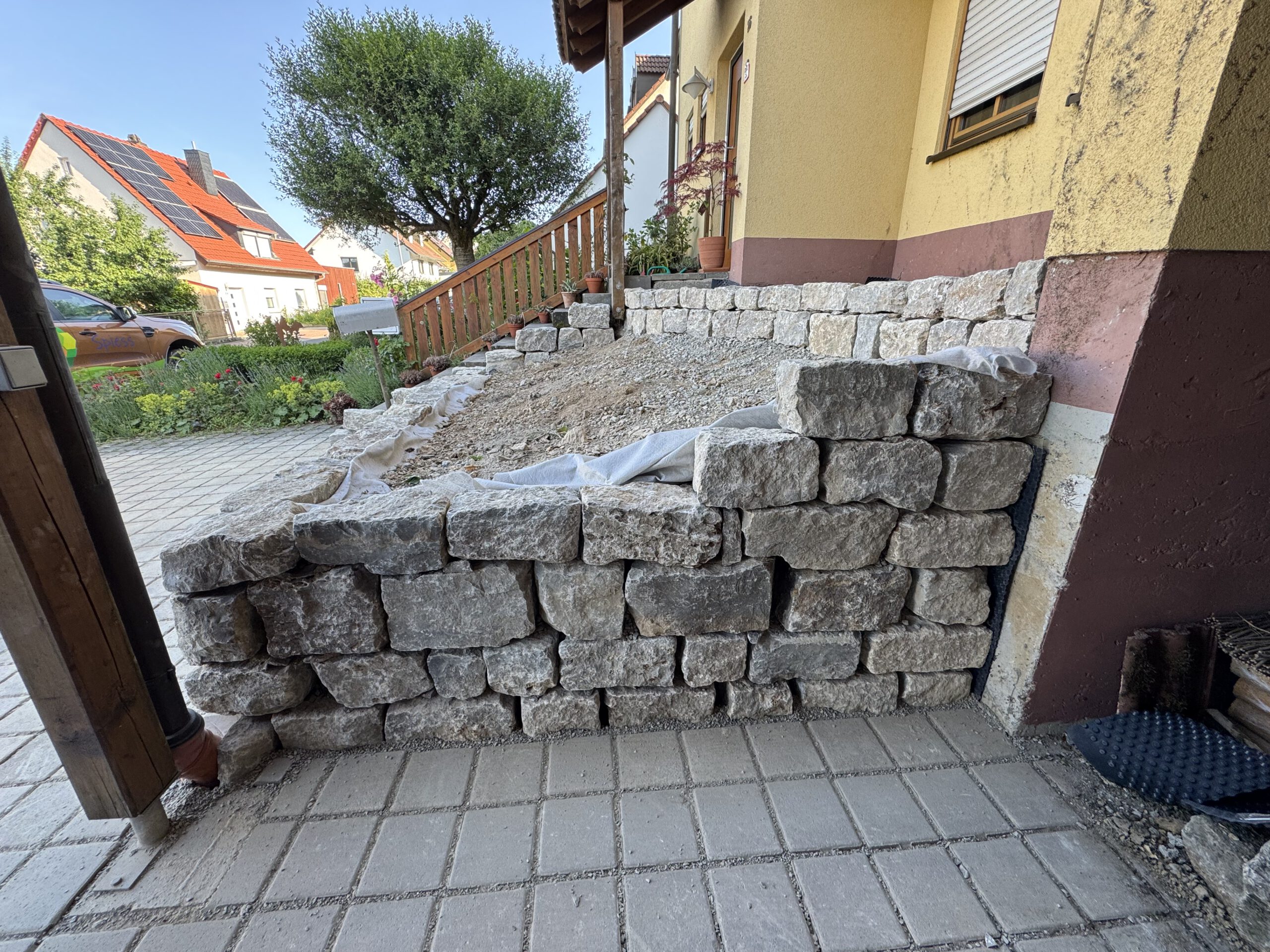 Herzlich willkommen! Wir freuen uns, Ihnen ein erfolgreich abgeschlossenes Natursteinmauer-Projekt bei einem unserer geschätzten Kunden vorzustellen. Dieses Projekt steht exemplarisch für unsere Expertise im Bau hochwertiger und langlebiger Natursteinmauern im Garten- und Landschaftsbau.🌿